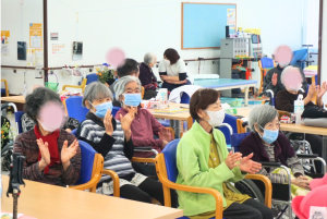 「焼き芋焼けたかな」の手遊びに続き、「とんぼのめがね」「ありがとうの花」の2曲を元気いっぱいに披露してくれました。
