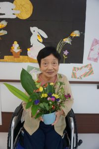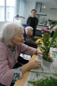作品作りに取り組むうちに、「私は〇〇流だったのよ」「私は花屋をしていたから」など、昔話にも花を咲かせます。